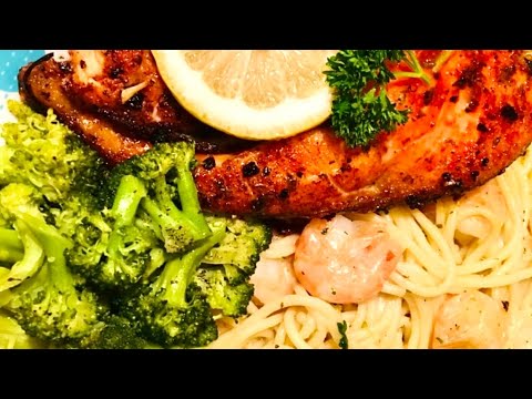 Lemon Pepper Salmon | Shrimp Scampi with Creamy Garlic...